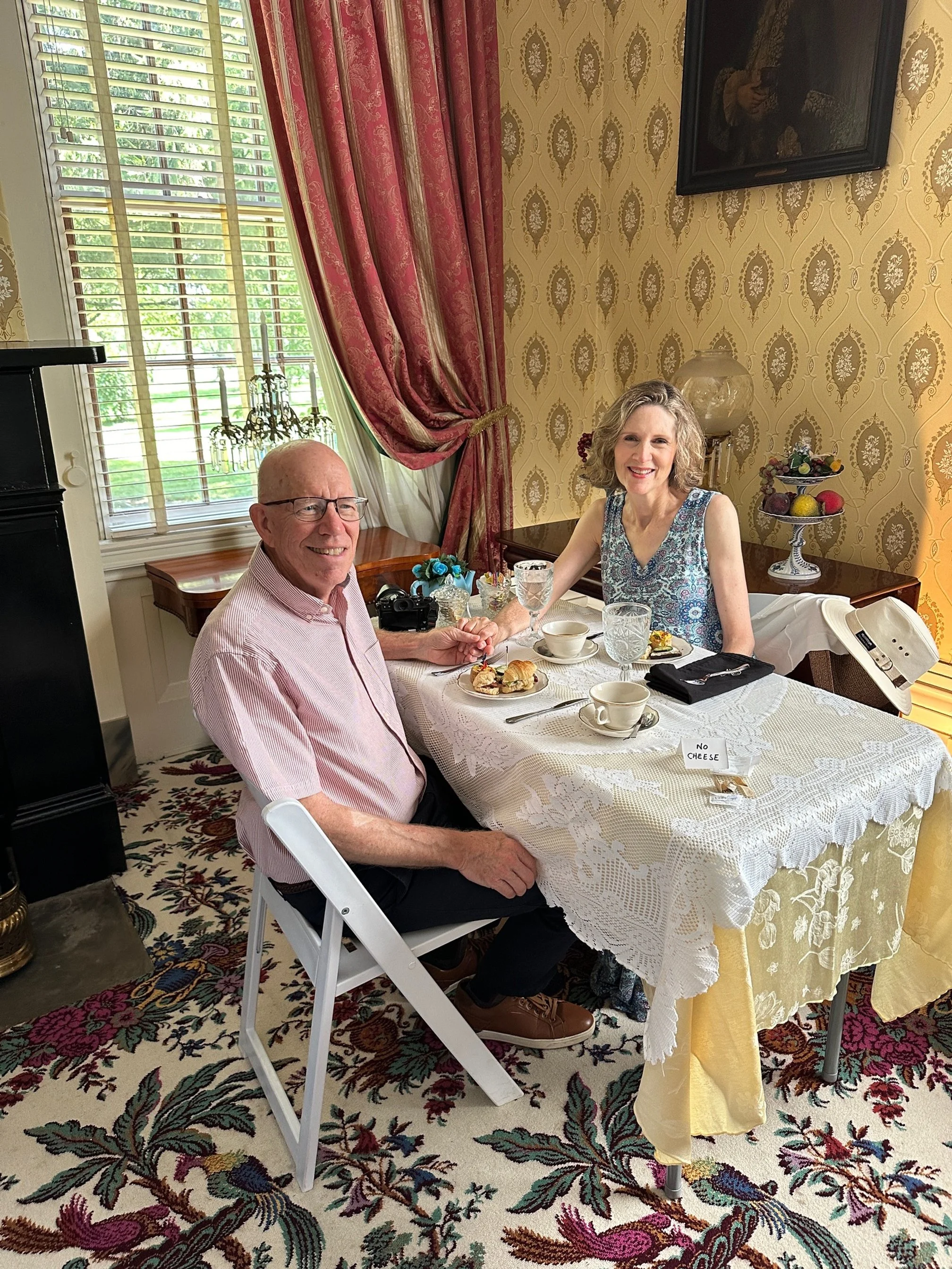 The tea company, Elmwood Inn, was also much more than we expected. It was there we met Bruce, the proprietor, and, in keeping with our emerging theme, so much more than one would expect. Bruce is an encyclopedia of tea knowledge but that is not just our newly formed opinion, it is seen in his many books on the subject and his speaking about tea that takes him around the world, Bruce’s tea shop was the first in the US to be designated by the English Tea Association. His expertise in blending teas is sought out across the globe and he is known for his designer teas. One example was his blend to celebrate the 250th anniversary of the Boston Tea Party in 2023. He has designed teas for royalty, famous restaurants and many special occasions. We chatted with him and had an informative tour of the little shop that is adjacent to the shipping and production end of his business. We also enjoyed a tasting of two distinct teas. We did, naturally, purchase three cans of tea, Paris Afternoon, Paris Morning and Chocolate Mint. They are in small cans with a sealed reusable lid and will keep the tea fresh for a long while. There is a lot of tea in each container as well so very well-priced. Jill also bought a book - that Bruce autographed with lots of afternoon tea menus, ideas and recipes. Danville and the Elmwood Inn Tea Company turned out to be a delightful afternoon stop.
